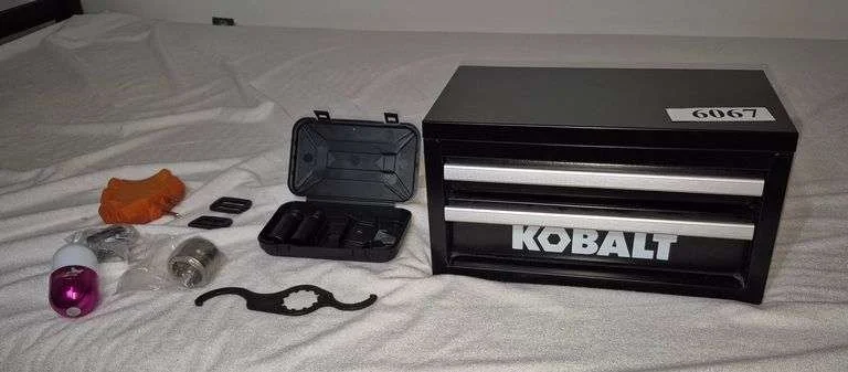 6067 Miniature black Cobalt two drawer tool box, Firefly light, miscellaneous tools