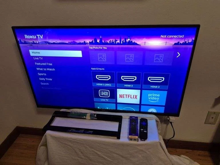 6052 Toshiba 32 inch smart TV with remote and antenna