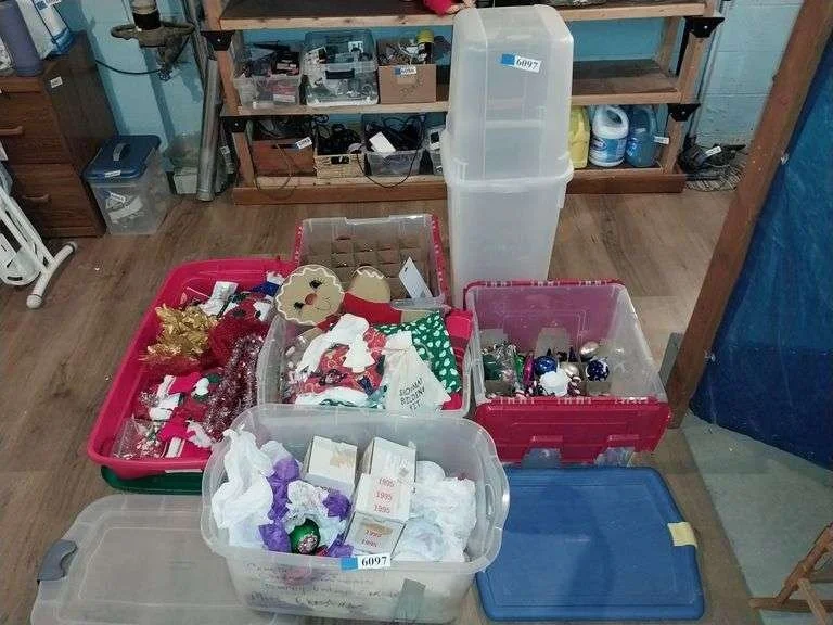 6157 Large tote full of Christmas lights, extension cords, Etc
