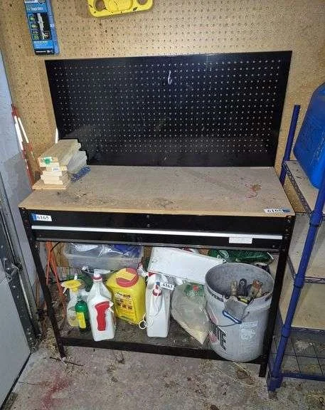 6165 Metal one drawer workbench with metal pegboard backsplash
