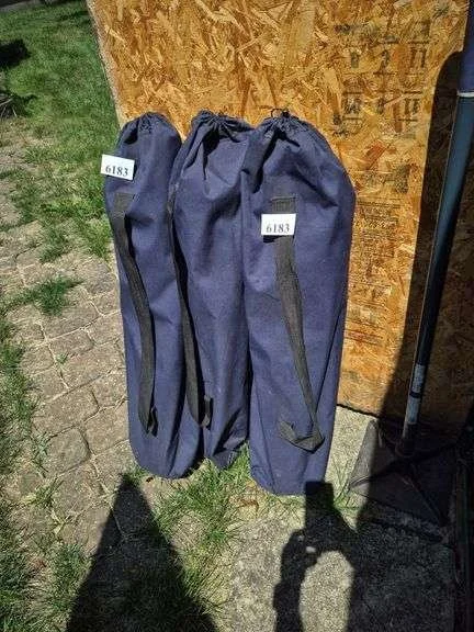 6185 Two pairs of plastic folding saw horses, two propane tanks, several tarps