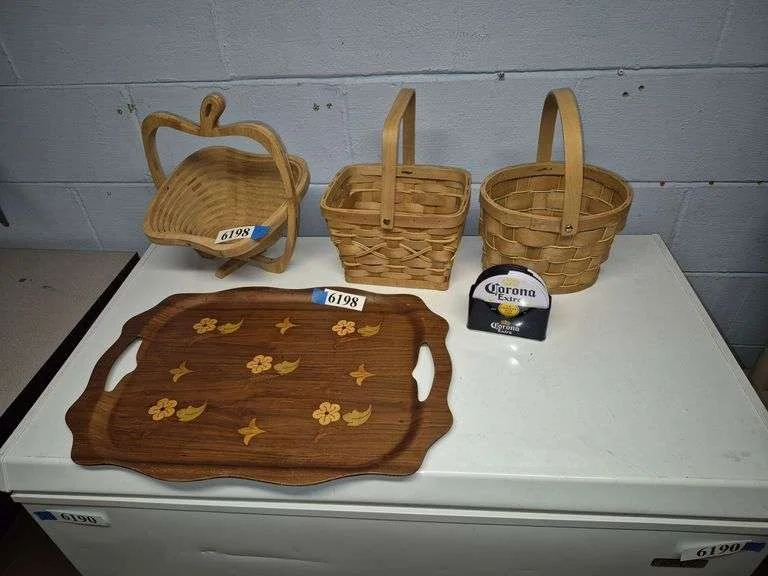 6198 Inlaid wood tray, wood folding Apple basket, other baskets, Corona coasters