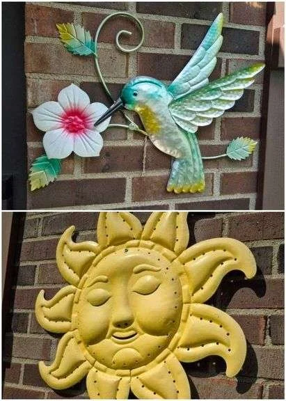 6229 Wall hanging outdoor metal hummingbird and Sun decorations