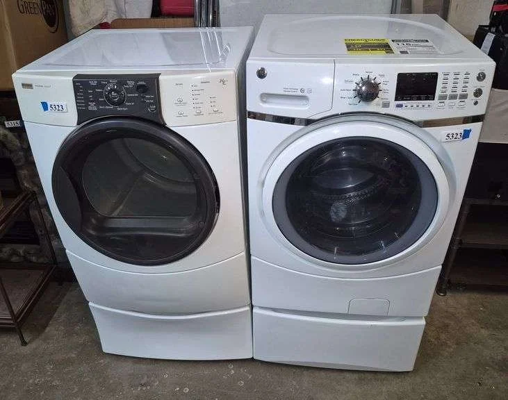 5323 GE front load washing machine with drawer base, Kenmore Elite smart Heat electric dryer with drawer