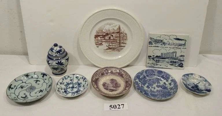 5027 Delft, blue and white, wedgewood, and purple transfer plates and bowls, delft ceramic tile, ginger j