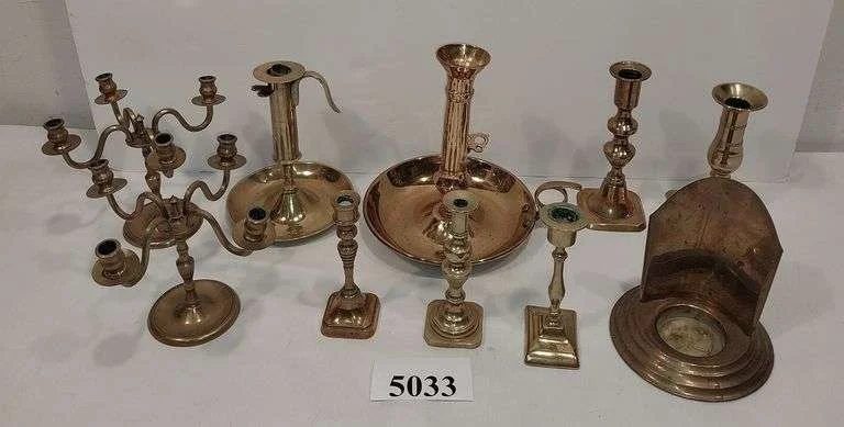5018 Brass apple paperweights, shoe horn, basket, ink wells, art deco cigarette box, etc