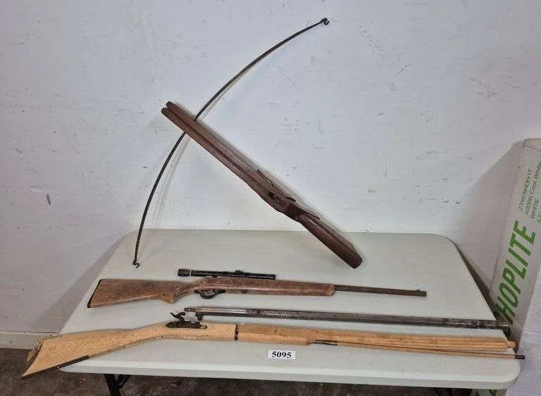 5263 Starter pistol, scopes, gun cleaning kit, hunting and fishing licenses, Etc