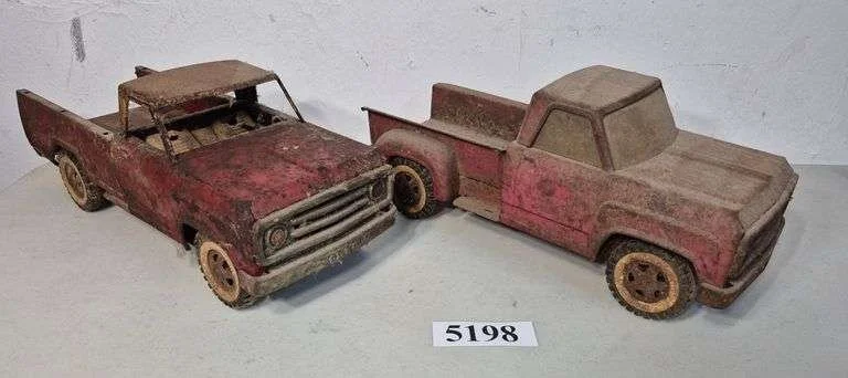 5254 Vintage toy steam shovel, cast iron pickup truck, locomotive tender, matchbox/hotwheel size cars and