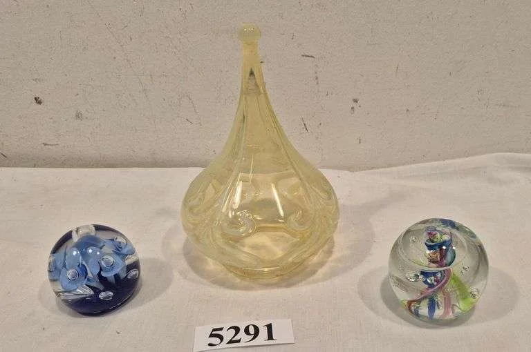 5026 Mats Jonasson glass art sculpture, 2 signed glass paperweights