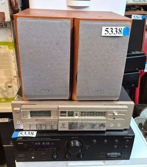5338 JVC receiver, Marantz tape deck, pair of Sony bookshelf speakers