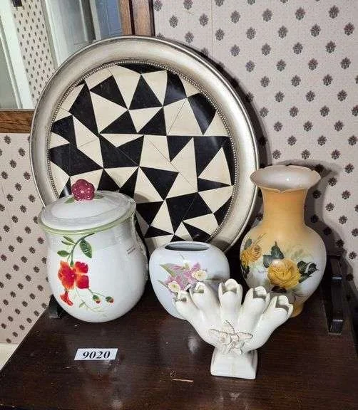 9020 Plastic tray, home studio hand painted cookie jar, vases