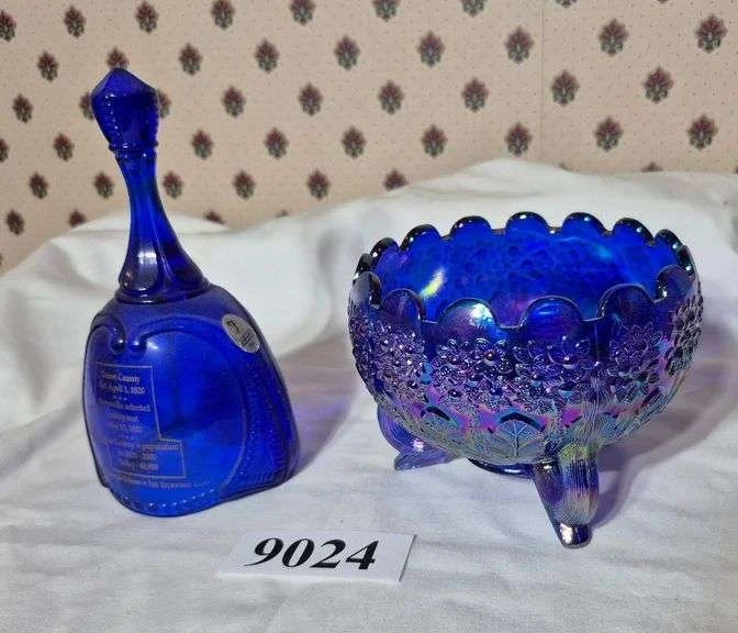9024 Fenton blue Carnival Glass bowl, Fenton Blue Glass Bell