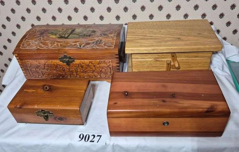 9093 Miniature Lane Cedar chest, two wood dresser / jewelry boxes