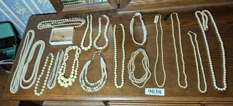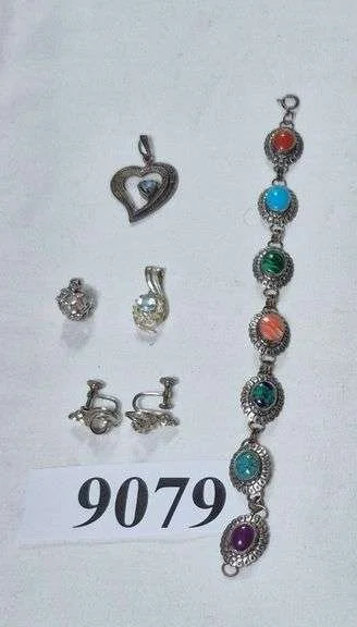 9071 Costume jewelry earrings, rhinestone earrings, pins, necklace, and bracelet