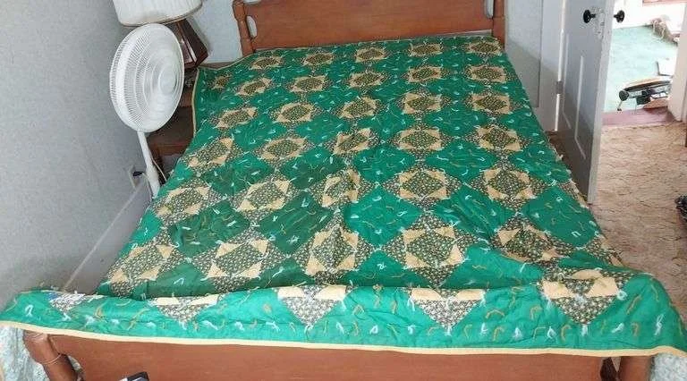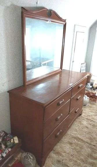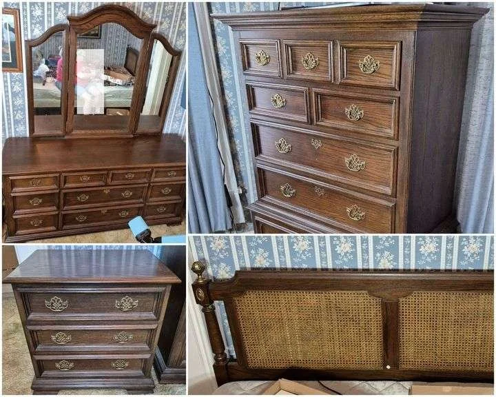 9047 Bedroom set including dresser with triple mirror, chest of drawers, nightstand, and queen size headb