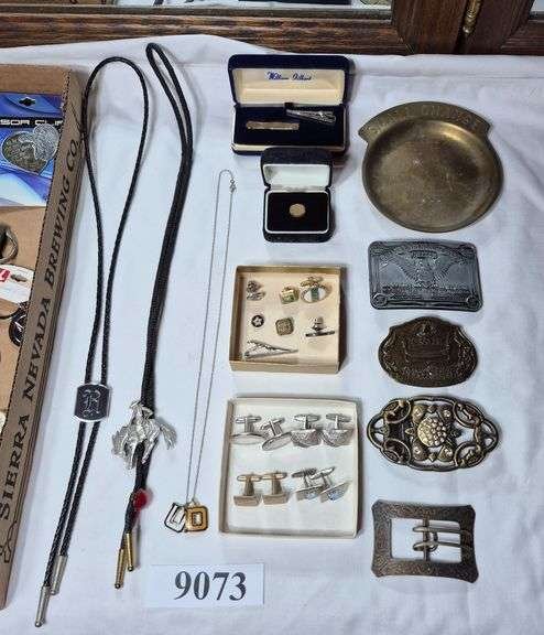 9073 Cufflinks, tie tacks and clips, belt buckles, bolo ties, suspenders, pins, keychains, Etc.