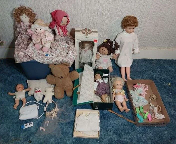 9080 Doll/toy cradle, High chair, vintage teddy bear