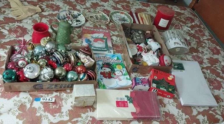 9644 Christmas decorations, miracle thaw, lamp, coasters, amber glass covered dish, Teavana items, Etc