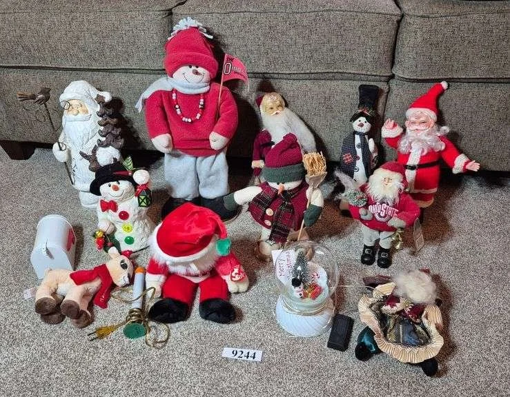 9657 Fitz and Floyd Santa cookie jar, dessert cupcake stand, cake plates, cheese dish, Etc