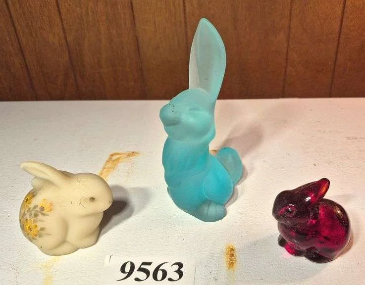 9563 Glass bunny figurines including hand painted Fenton figurine