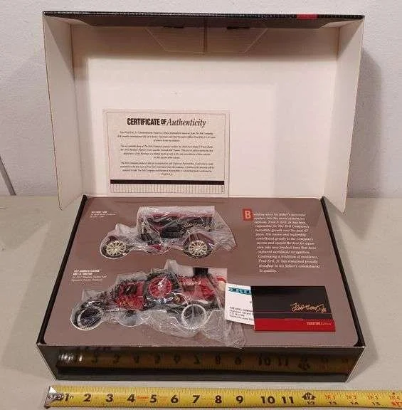 2138 ERTL signature edition 1913 Ford T van and 1931 Hawkeye flatbed with International Tractor