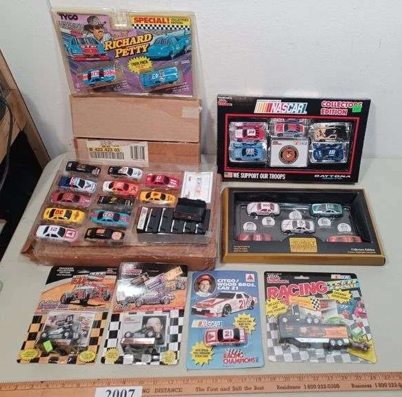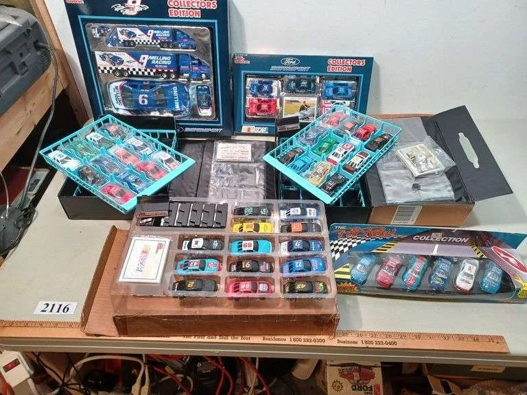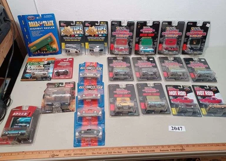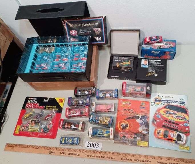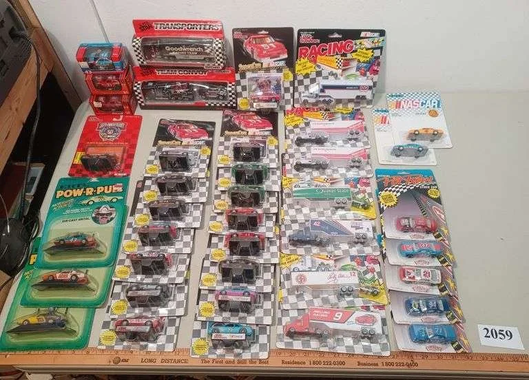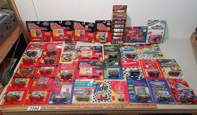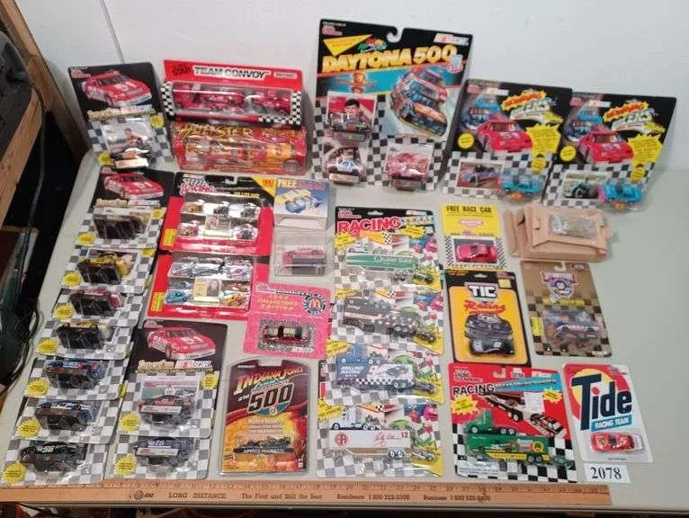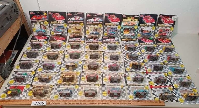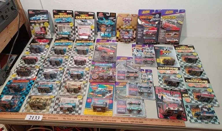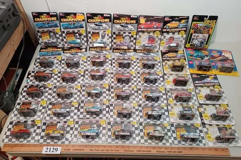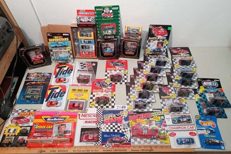 2049 Racing Champions, Hot Wheels, and other race cars in packaging