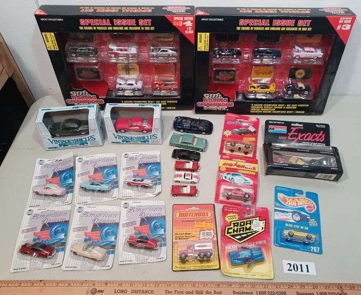 2059 ERTL, Matchbox, Racing Champions, and other race cars and race car sets in Packaging