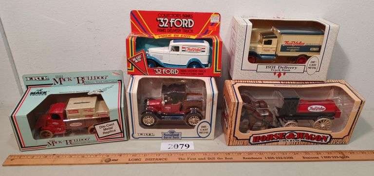 2079 (5) ERTL die-cast truck and horse and wagon banks in boxes