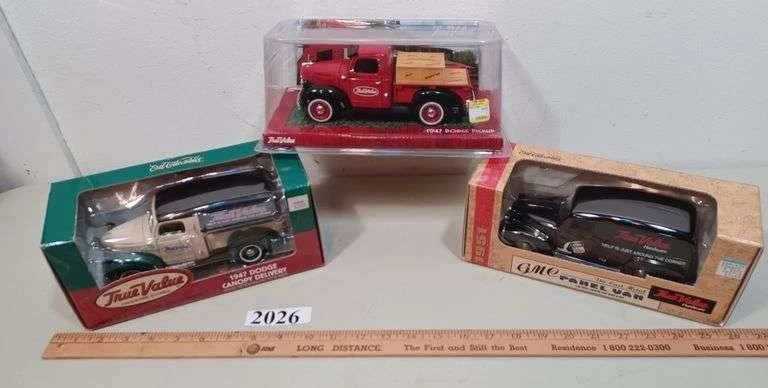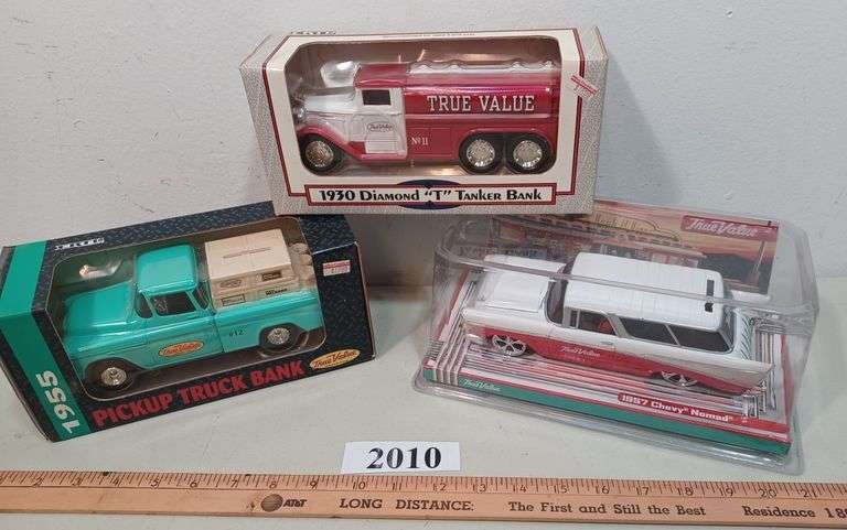 2026 1995, 1999, 2013 True Value die-cast truck banks in packaging