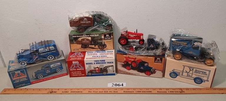 2064 (5) ERTL & Liberty die-cast truck and tractor banks in boxes