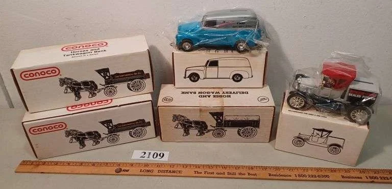2109 (5) ERTL die-cast horse & wagon and truck banks in boxes
