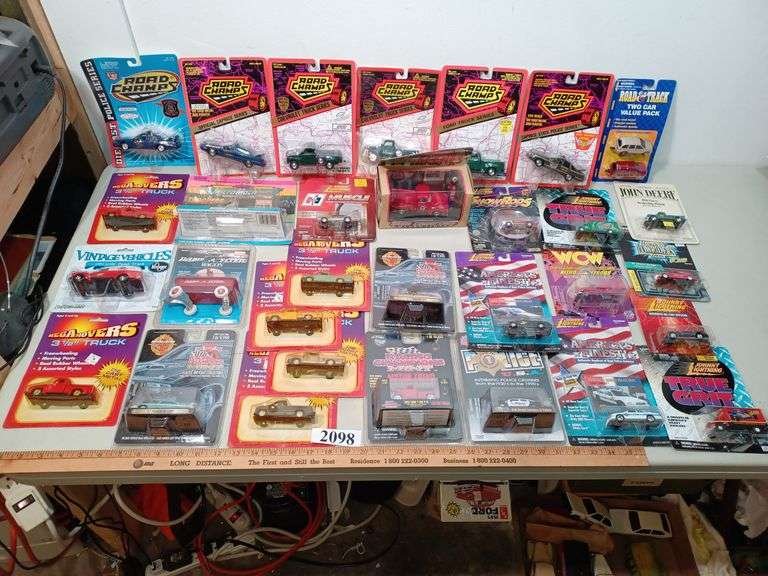 2098 Road Champs, Johnny Lightning, and other cars and trucks in packaging