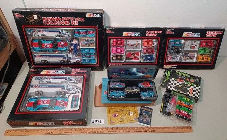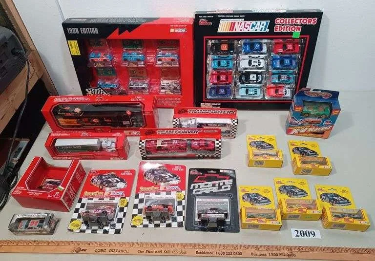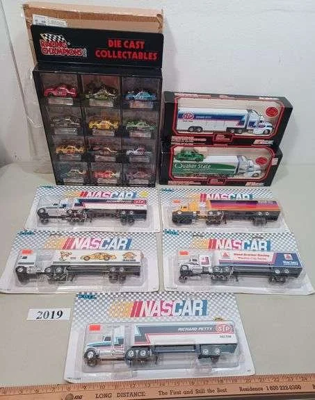 2019 NASCAR car set in display case, NASCAR truck sets in Packaging