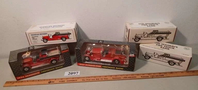 2097 (5) ERTL die-cast firetruck banks in boxes