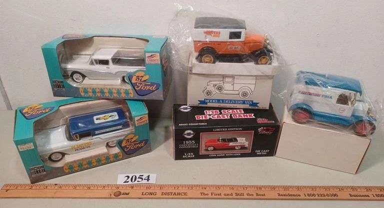 2054 (5) Racing Champions, Liberty, ERTL die-cast car & truck banks in boxes