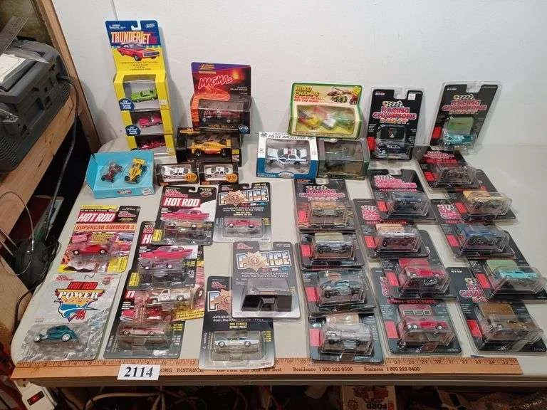 2114 Racing Champions, Johnny Lightning, and other hot rod and hot rod police cars in packaging