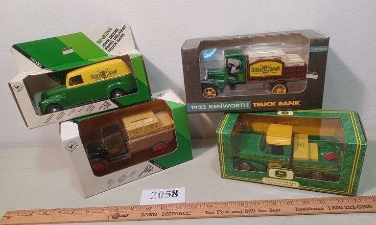 2058 (4) John Deere ERTL die-cast truck banks in boxes