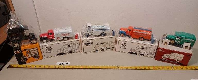 2130 (5) ERTL, First Gear, and Liberty die-cast truck banks and trucks in boxes